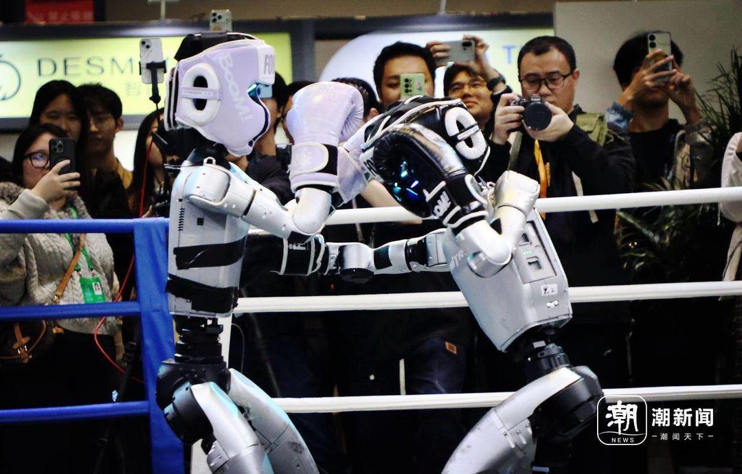 在浙江乌镇举行的2025年世界互联网大会“互联网之光”博览会上,一场具身机器人搏击赛激情上演。